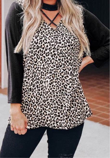 Leopard choker crisscross shirt