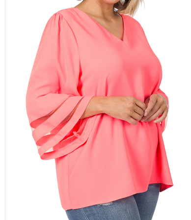 Plus Neon Coral Pink bell sleeve