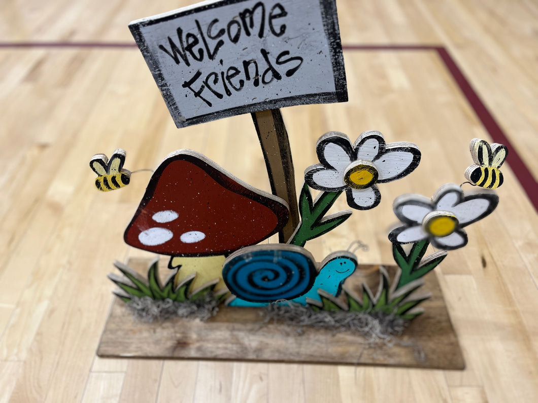Snail & Mushroom Welcome Friends sign